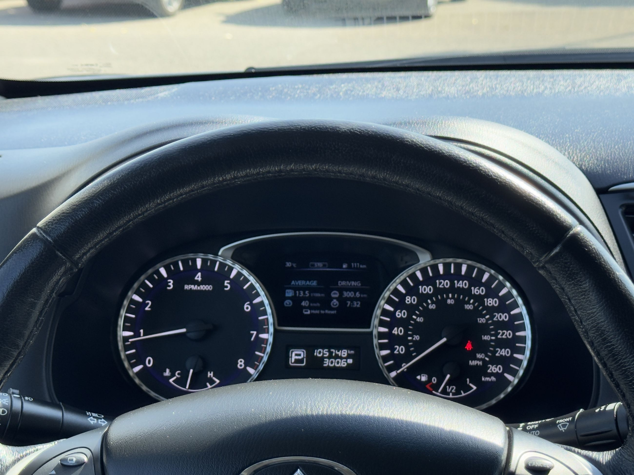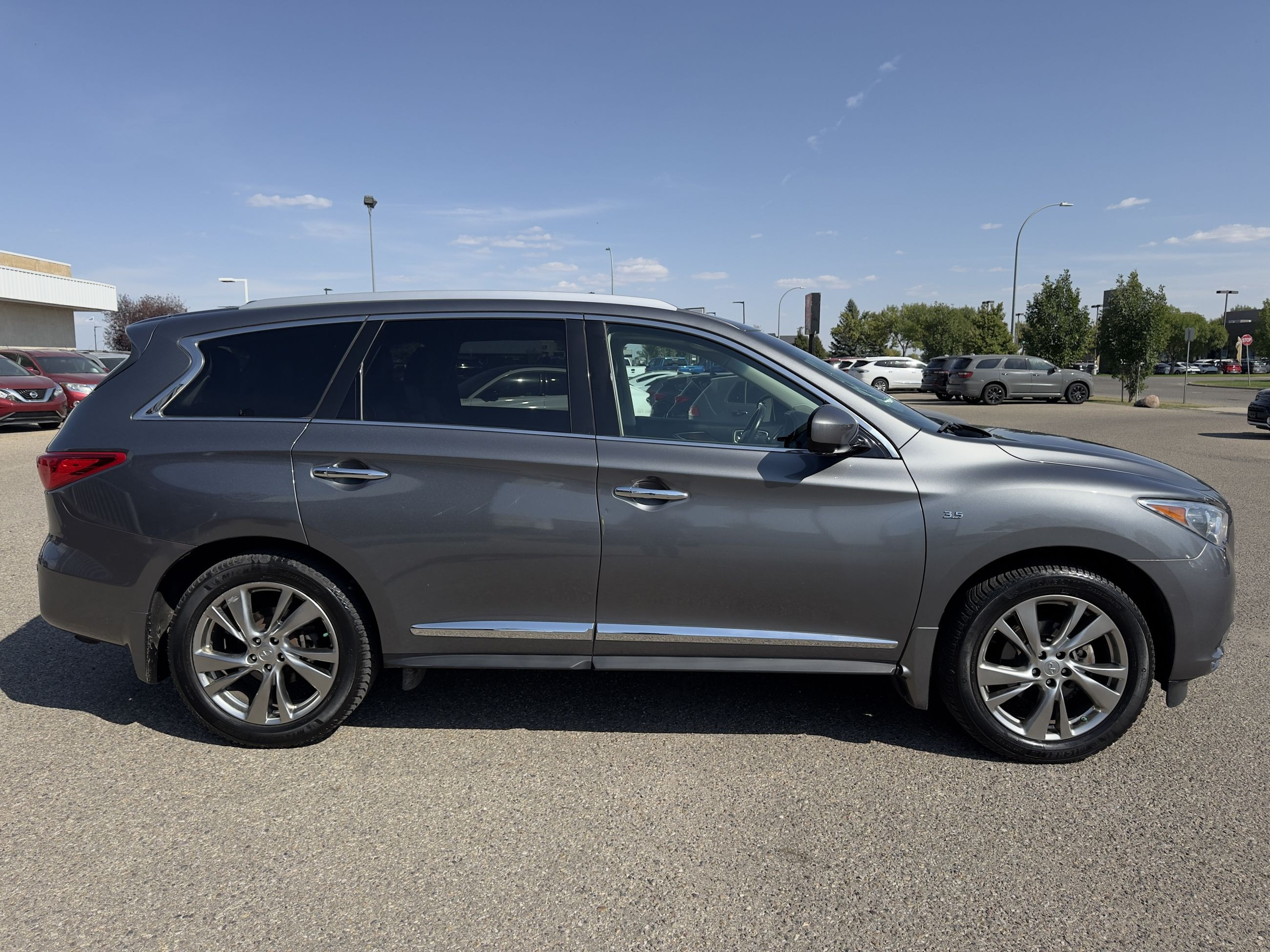 The vehicle you see before you is a 2015 Infiniti QX60. This vehicle is powered by a 3.5L engine paired with an automatic transmission that features AWD and has 105,748km on the odometer.