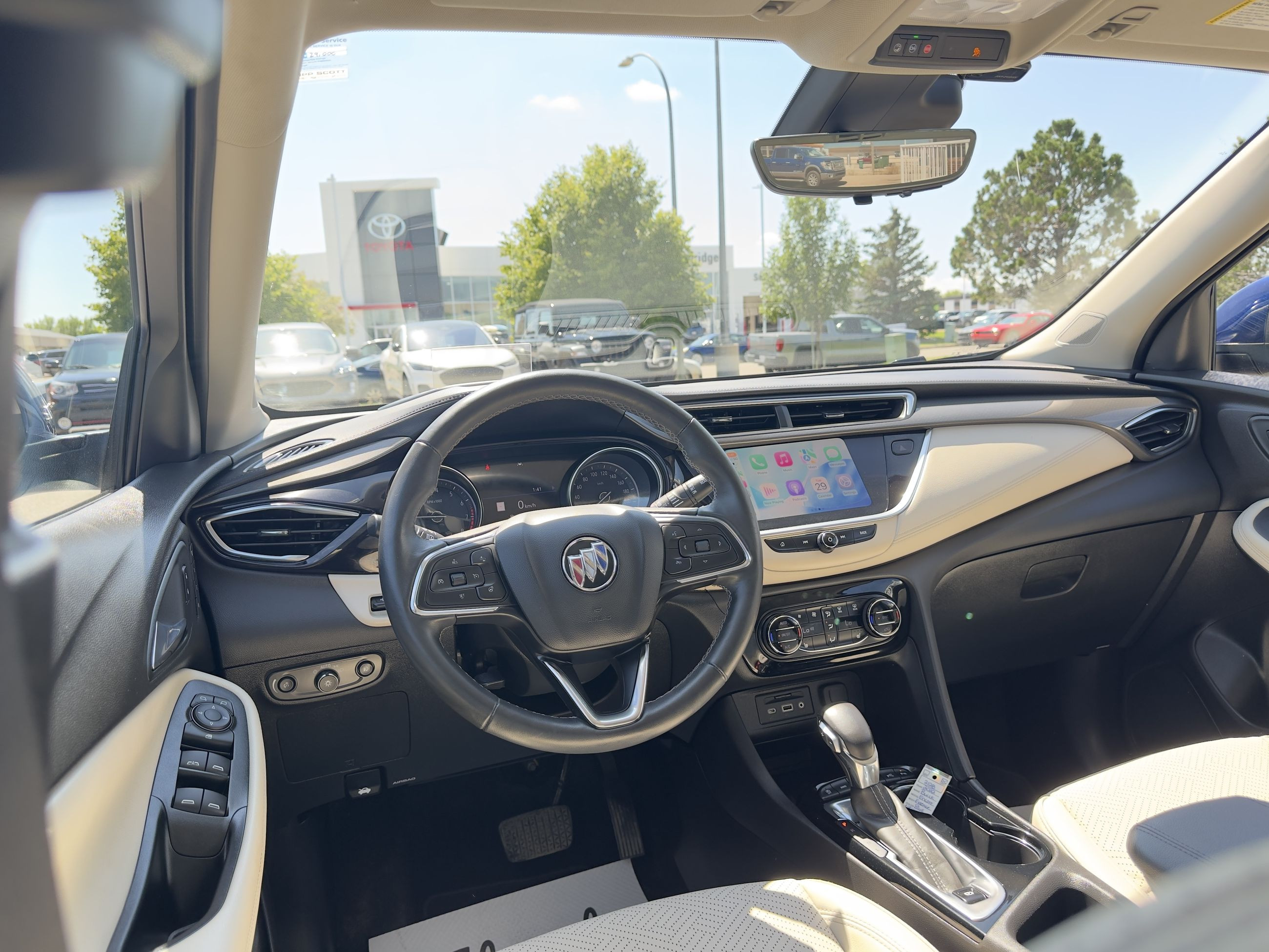 The vehicle you see before you is a 2022 Buick Encore GX Essence. This vehicle is powered by a 1.3L 3-cylinder engine paired with an automatic transmission that features AWD and has 23,418km on the odometer.