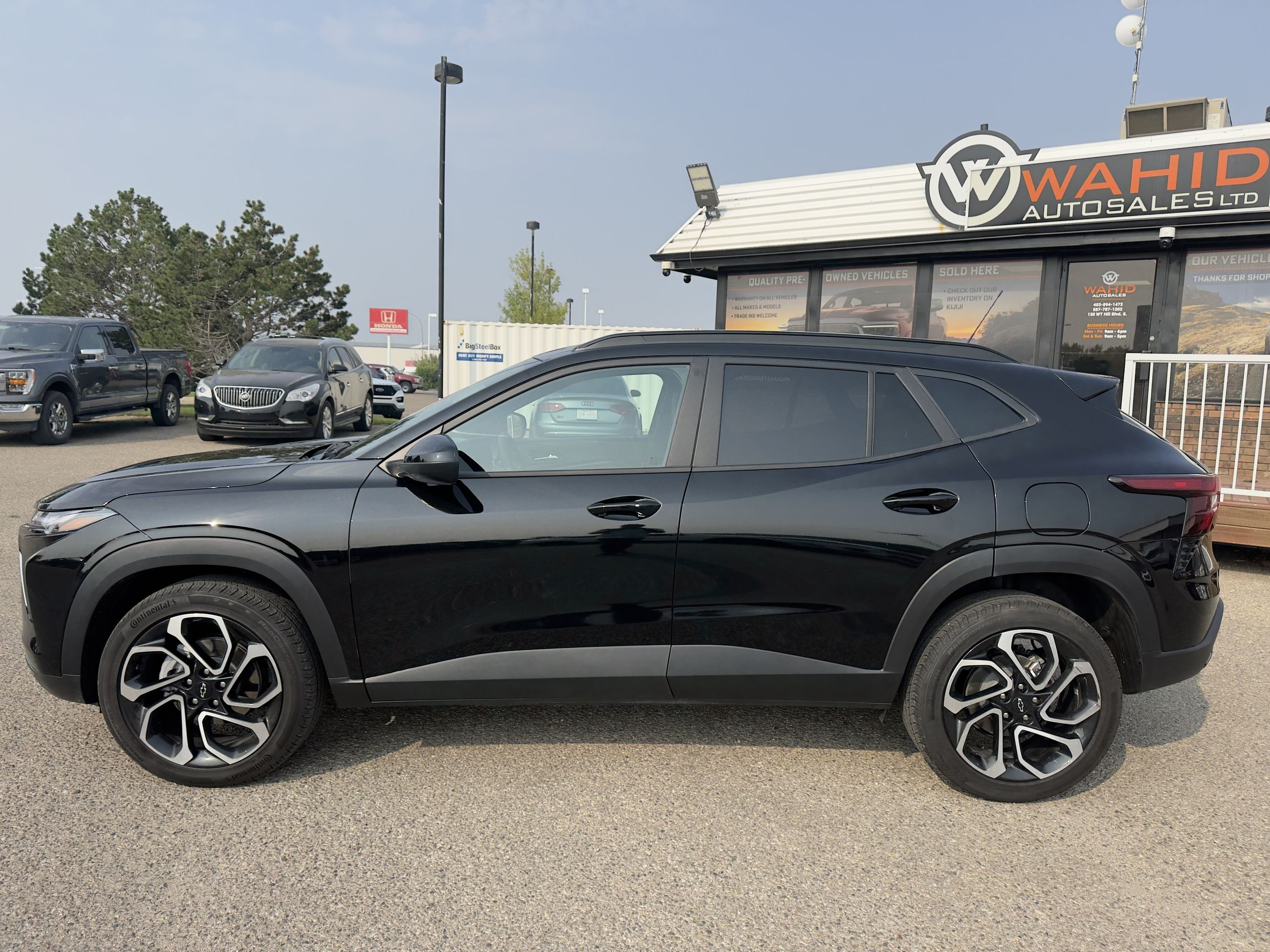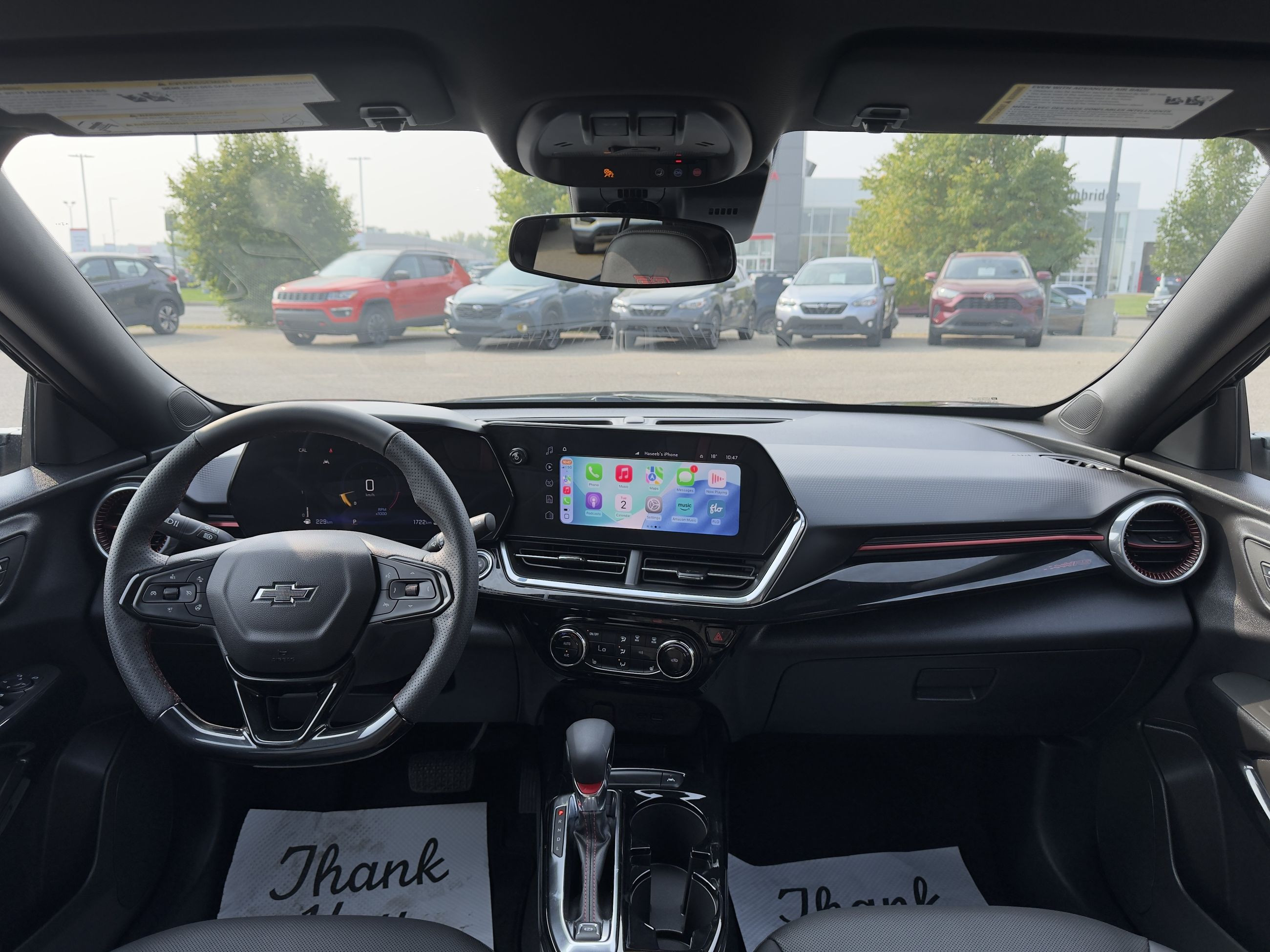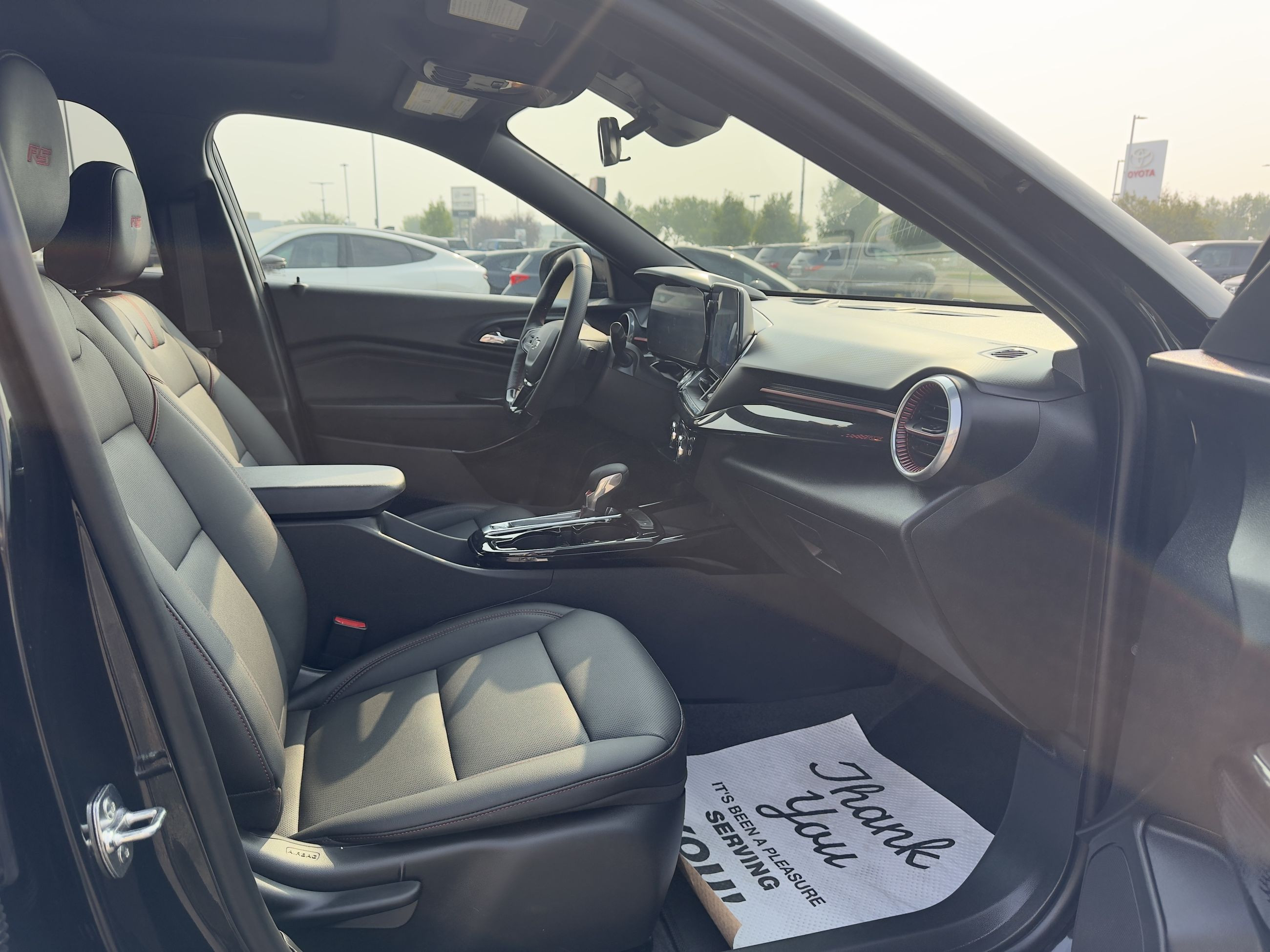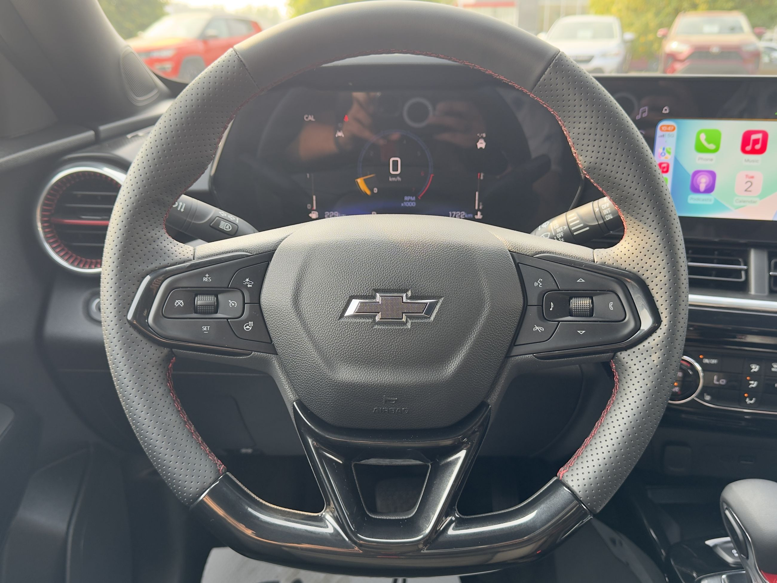 The vehicle you see before you is a 2025 Chevrolet Trax 2RS. This vehicle is powered by a 1.2L 3-cylinder engine paired with an automatic transmission and has 1,722km on the odometer.